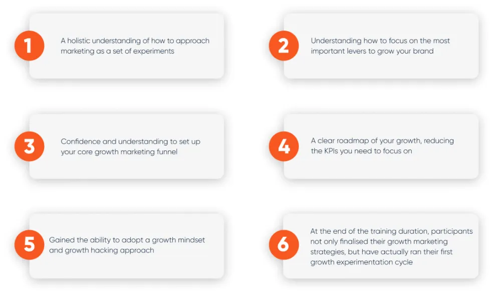 Cohort completes their first growth funnel, gains an understanding of main funnel KPIs & has a solid understanding of what goes into a growth marketing plan.